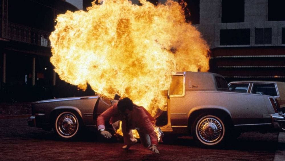 At 1.5 inches, this pin is the perfect size to wear or display—small enough to be subtle, but big enough to pack visual impact. The car and flames are captured in clean, vivid hard enamel, with polished metal outlines that give it that classic pin-trading luster. Every element, from the plume of fire to the silhouette of the Cadillac, is carefully detailed to honor the real-life event and its on-screen legacy.