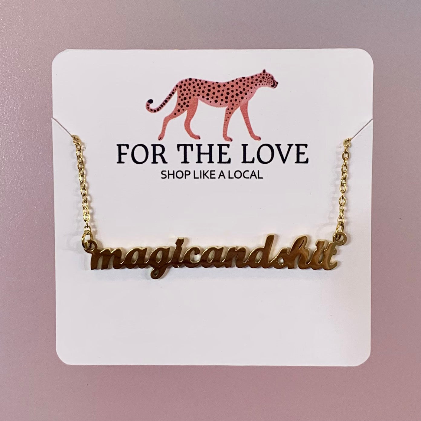 Upgrade your accessory game with this Magic And Shit Necklace. Made with high-quality gold, this necklace brings a touch of magic to your everyday look. Show off your quirky side with this playful piece. (Wearing this necklace may attract compliments and envious stares.)