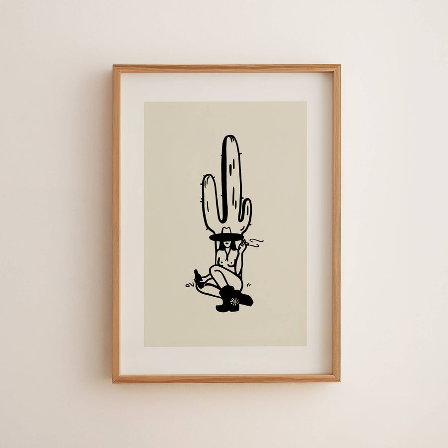 Desert Cowgirl Minimal Western Art Print Vintage Home Decor