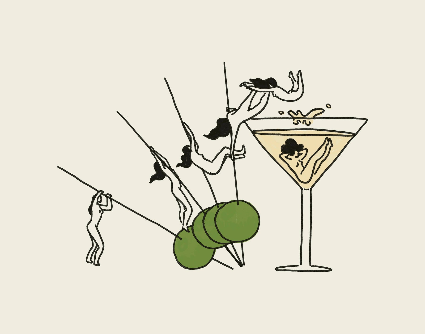 This whimsical art print delivers a playful, editorial twist on classic cocktail culture. Featuring a determined woman pole vaulting straight into her martini—using a cocktail stick complete with a speared olive—this illustration captures humor, confidence, and just the right amount of absurdity. It’s a clever celebration of determination… and a well-made drink.