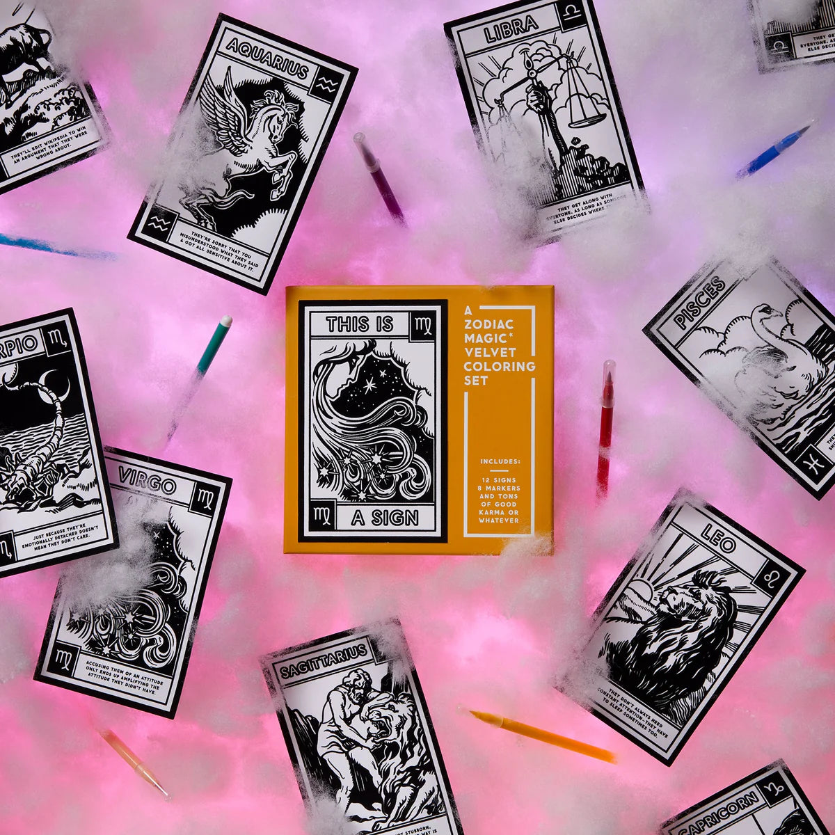 Explain away all of your (and your friends’) bad habits with this set of twelve magic* velvet zodiac signs by Brass Monkey. Color them with the 8 included brush tip markers, then hang them up (and/or hand them out). Either way, they’re proof that you weren’t trying to be difficult on purpose...mercury is probably just in retrograde or something.