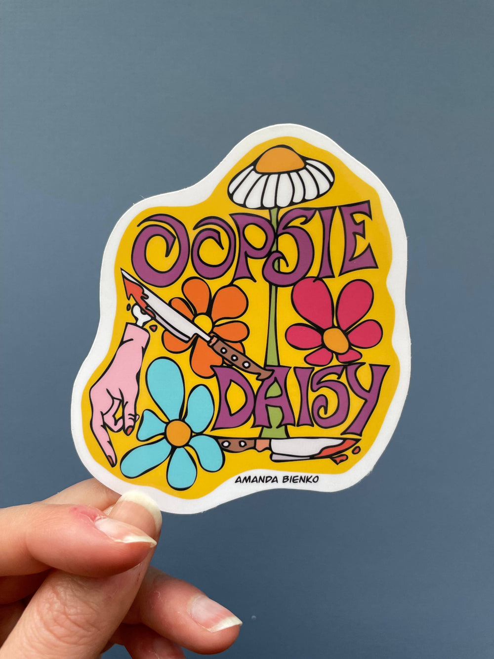 Part of my Groovy Punk Collection, this vinyl sticker is the perfect blend of vibrant retro charm and edgy horror symbolism. Designed to embrace playful contradictions, this sticker is a bold mix of bright, nostalgic colors and dark, kitschy imagery. It’s a must-have for those who love mixing styles and appreciate designs that push boundaries. Whether you're into punk, goth, feminist art, or vintage aesthetics, this sticker adds personality and flair to any surface.