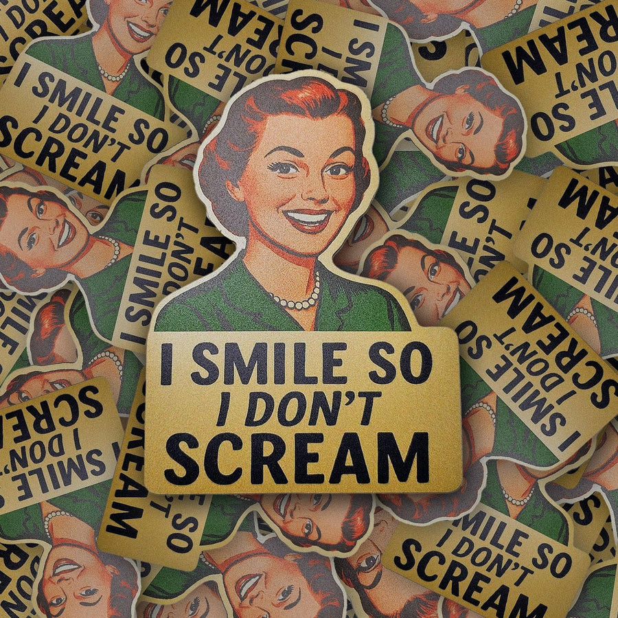 ✨ I Smile So I Don’t Scream – Retro Feminist Vinyl Sticker ✨