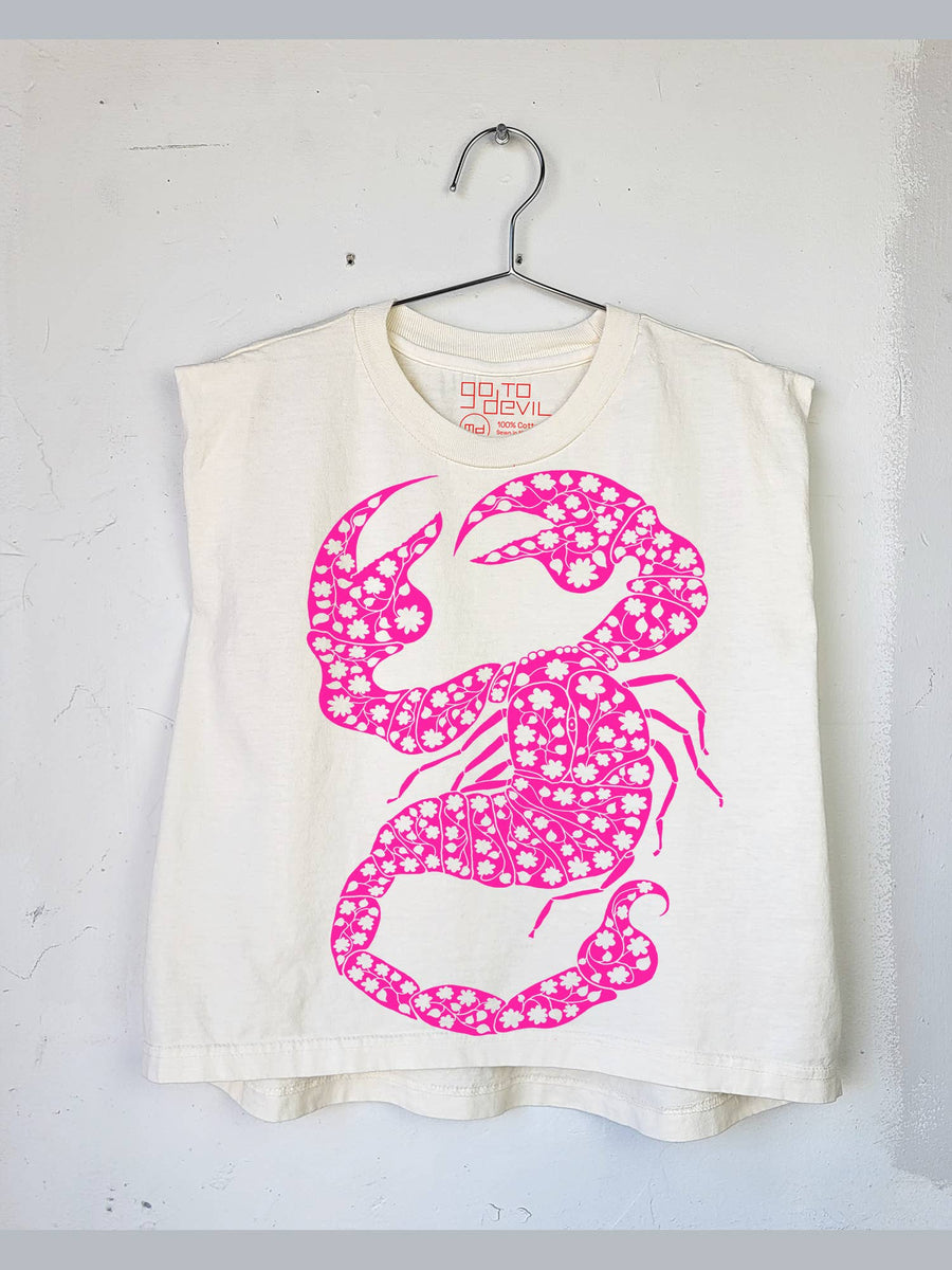 BEST SELLING BODY! Garment dyed heavyweight muscle tee with structured shoulders and a boxy fit. Slightly cropped. Hand printed to order at Go To Devil HQ.