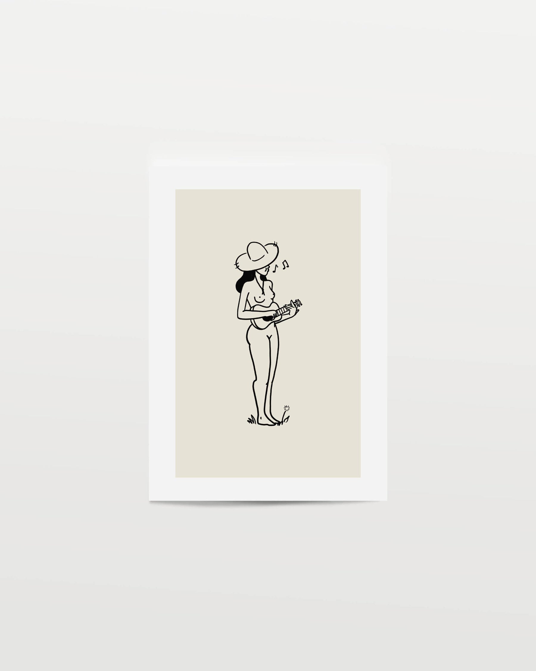 Bring a sense of serenity to your shop with this peaceful art print, featuring a ukulele player gently strumming by the coast. Soft, simple, and quietly expressive, this piece captures a moment of pure calm—making it an ideal addition to home décor collections that celebrate mindfulness, music, and slow-living vibes.