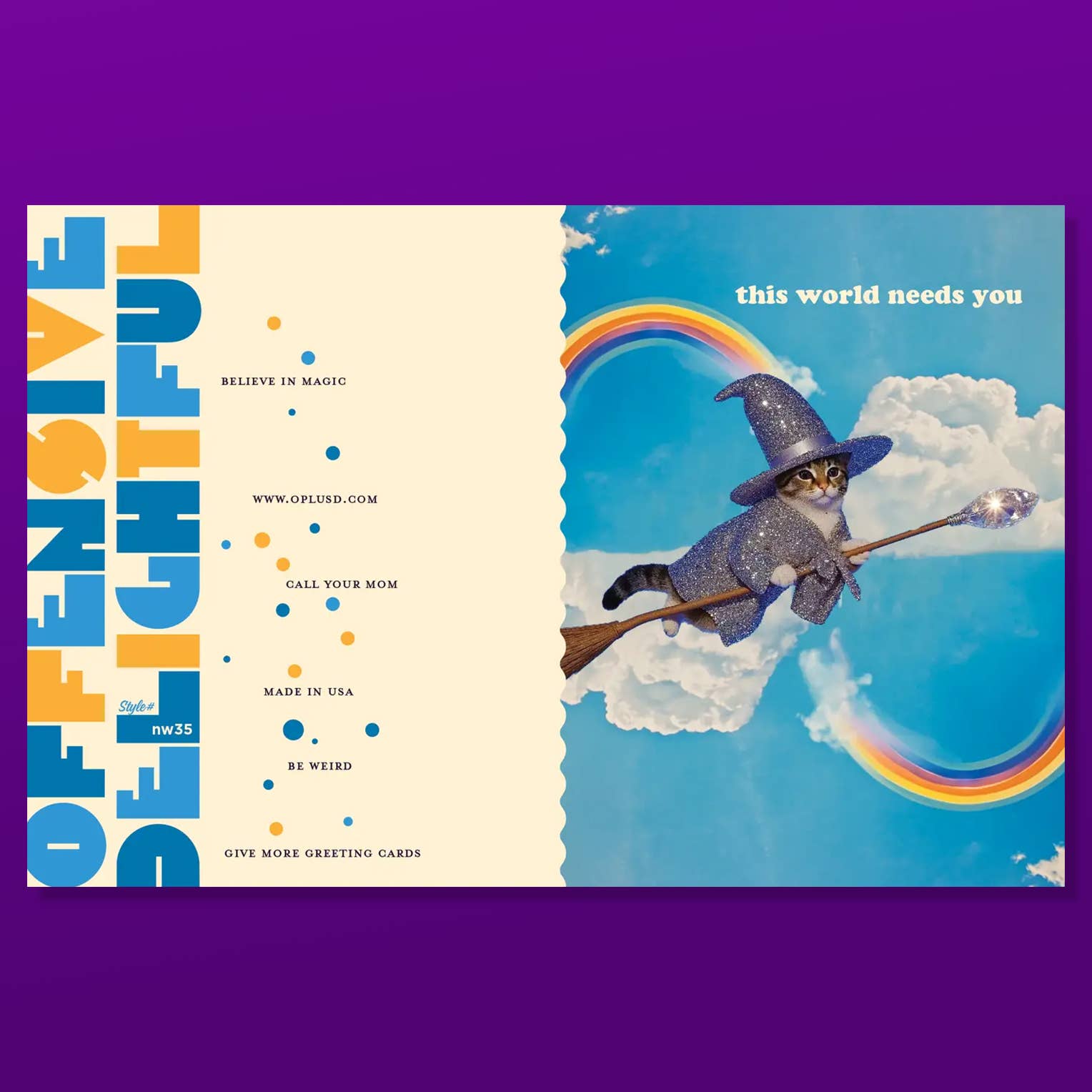 This all-occasion greeting card is ideal for encouragement, friendship, mental health support, birthdays, congratulations, or just because. Featuring a charming witchy cat illustration and the message “This world needs you”, it's a heartfelt way to lift someone’s spirits and remind them how important they are.